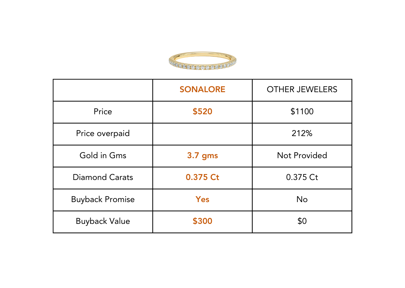 Traditionally, fine jewelry prices are mostly made up of markups, with only 25-30% going towards gold and gemstones. But at Sonalore 65-70% of what you pay goes toward these precious materials, giving you the most value for your money.