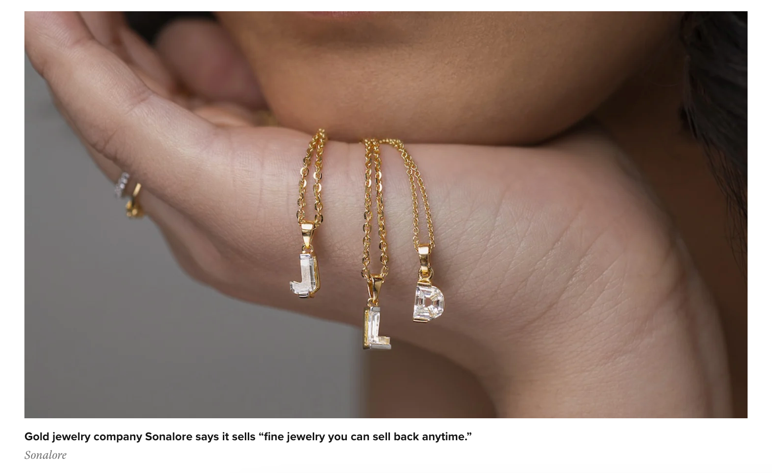 U.S. jewelry company Sonalore says it is “shaking up” the industry by operating an unusual business model: it will buy its pieces back from customers when they no longer want them, guaranteeing to pay the market price for gold minus a 15% fee.