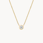 A single radiant lab-grown diamond, embraced by a smooth bezel setting, floats elegantly on a delicate chain. This contemporary piece pairs ethical luxury with timeless design for an effortlessly sophisticated look.