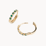 Handcrafted in 18k solid gold, these bezel-set emerald hoops add a vibrant pop of color to your collection.