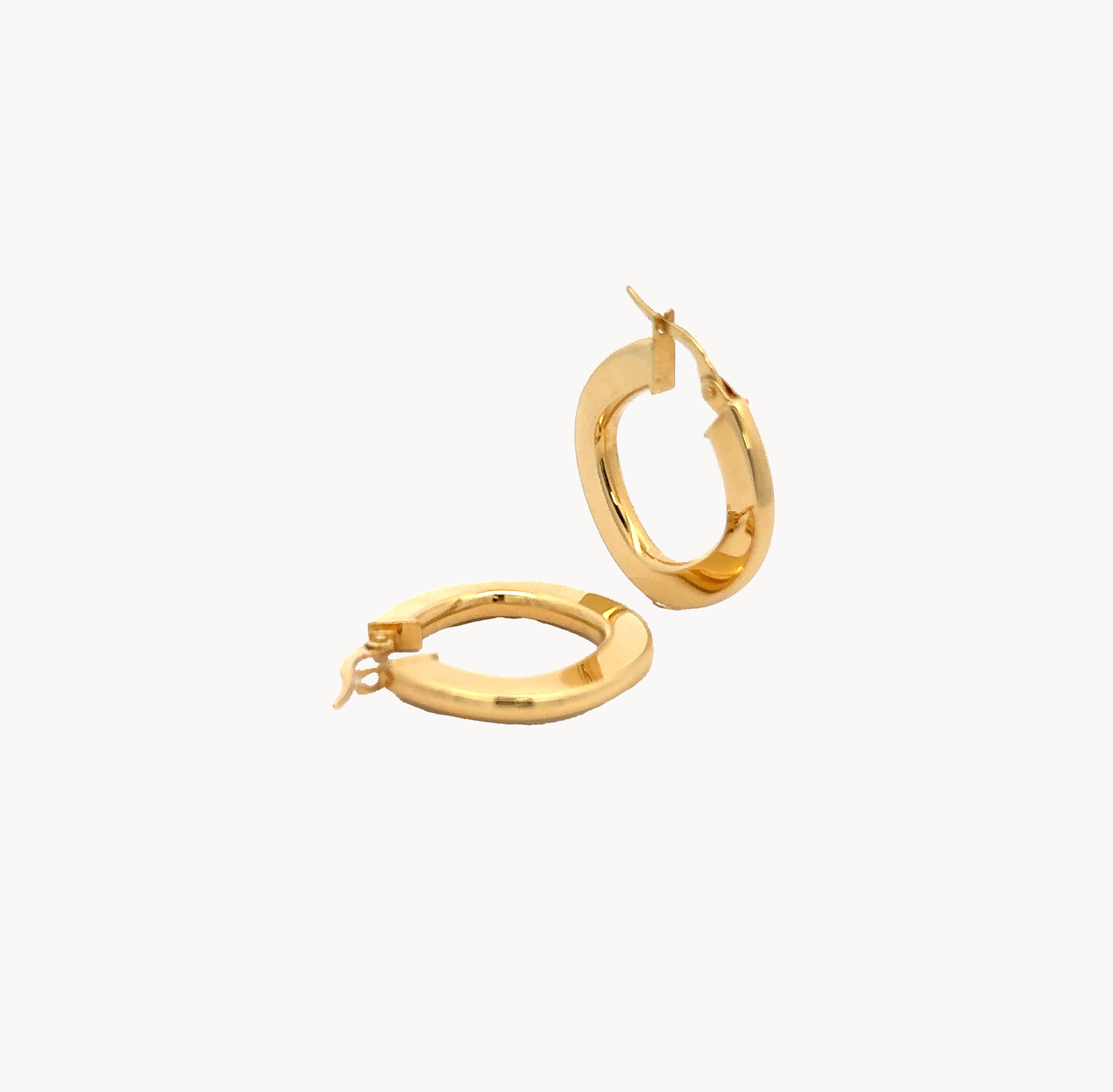 Slim, angular, and uniquely modern. These solid gold hoops are for those who think outside the circle.