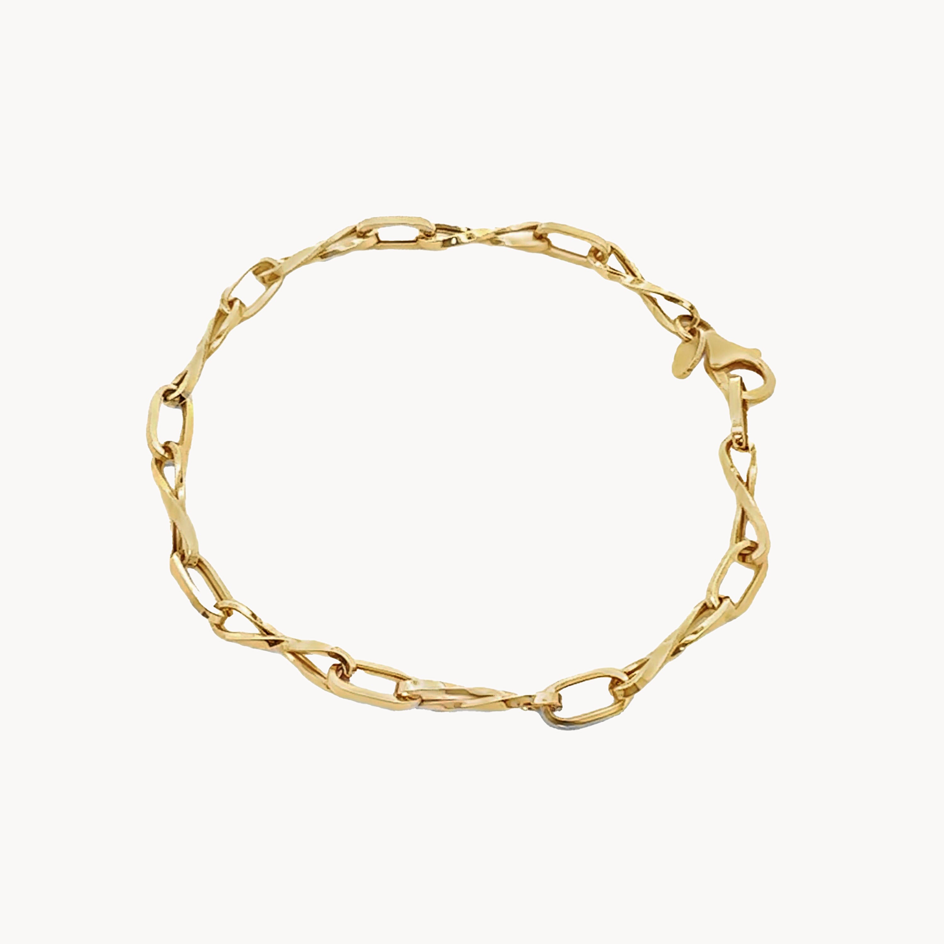 Endless loop design symbolizes continuity. A contemporary twist on paperclip bracelets.