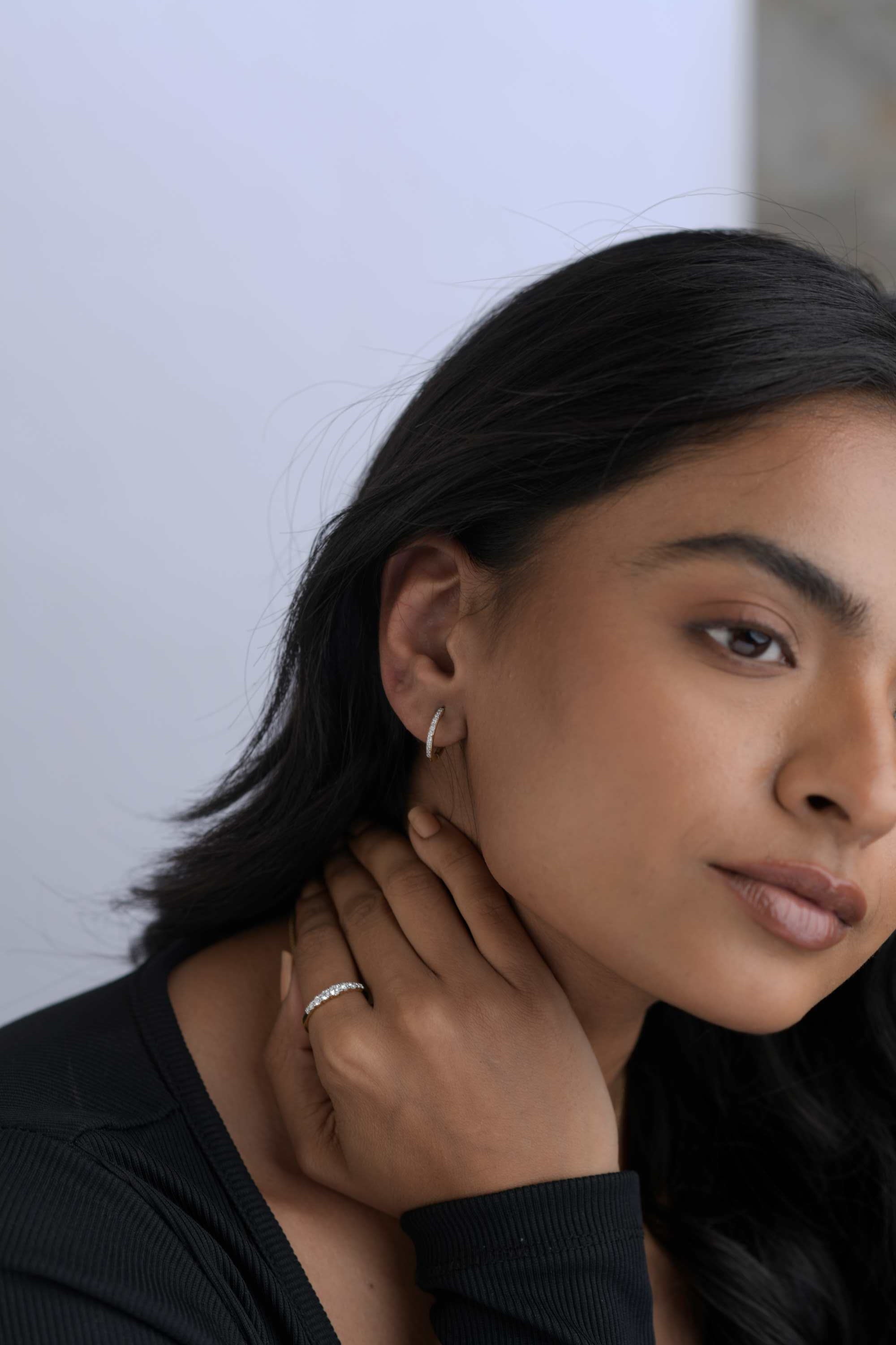 The perfect balance of elegance and everyday wear. These medium hoops add just the right amount of sparkle to your look.