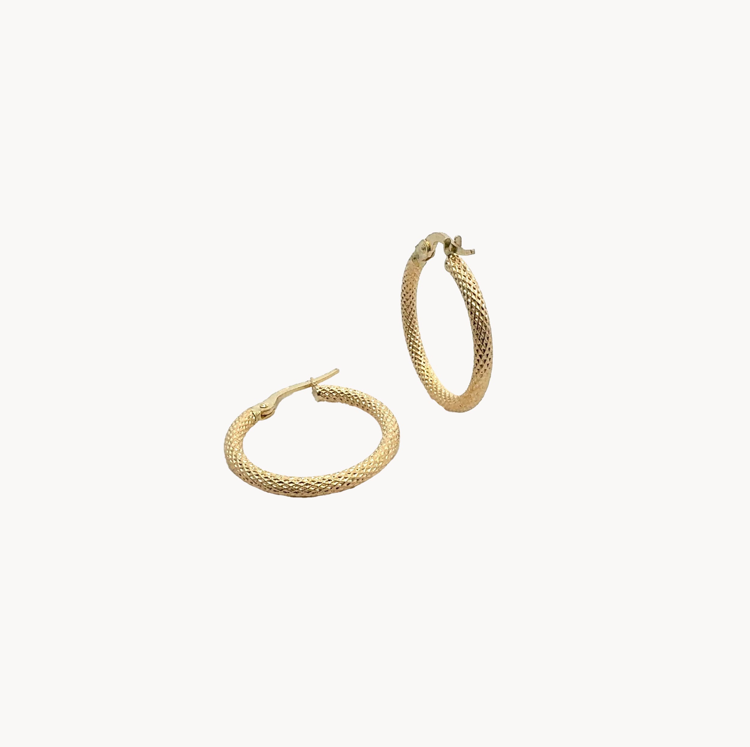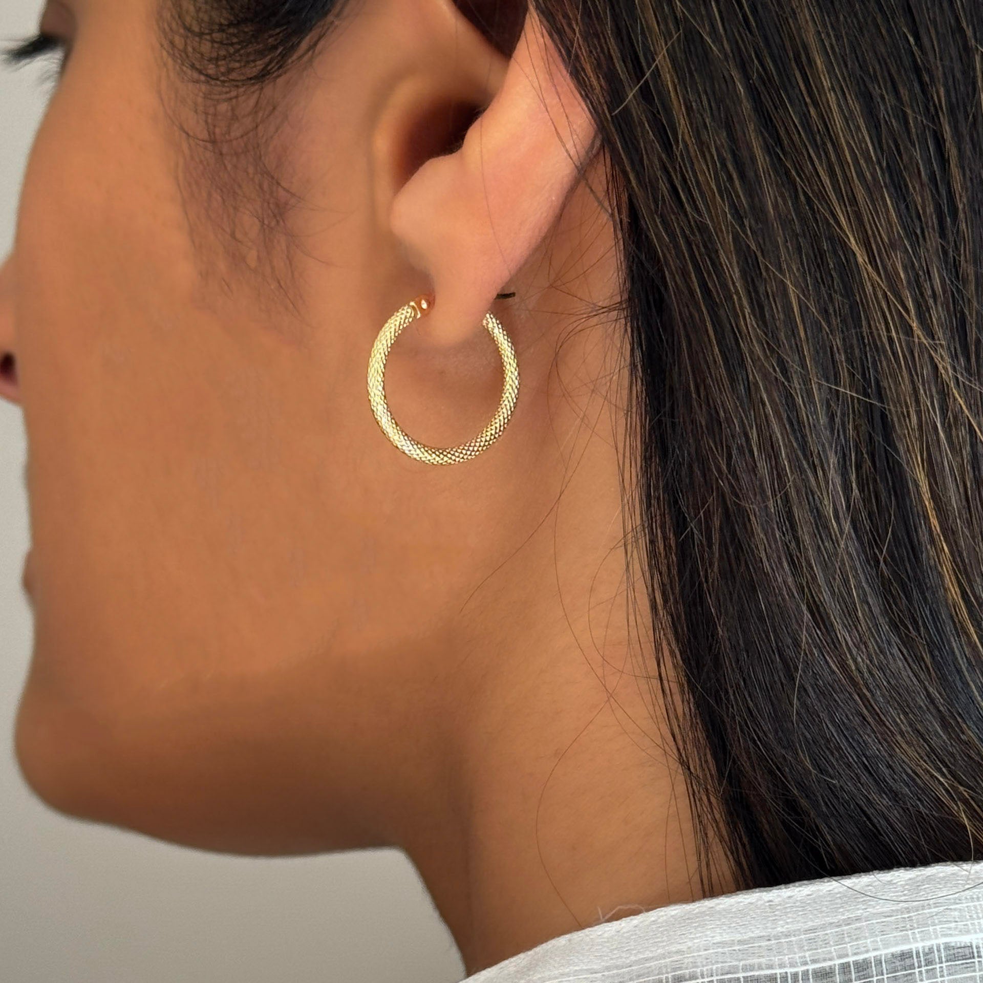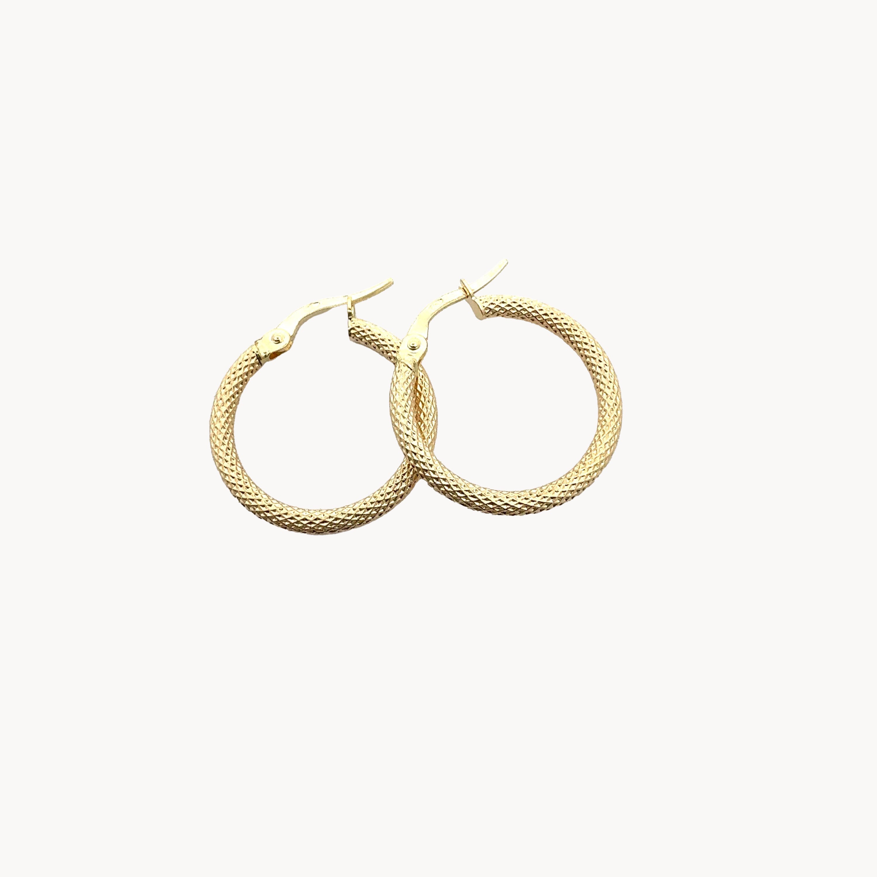 Delicately etched patterns adorn these eye-catching hoops. Intricate textures transform simple hoops into statement stunners.