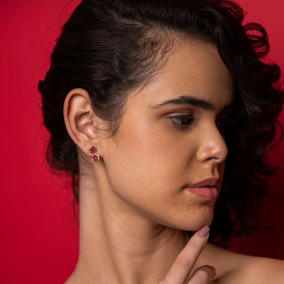 Delicate ruby petals unfold in these botanical-inspired drops, bringing natural grace to any ensemble