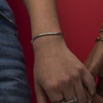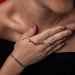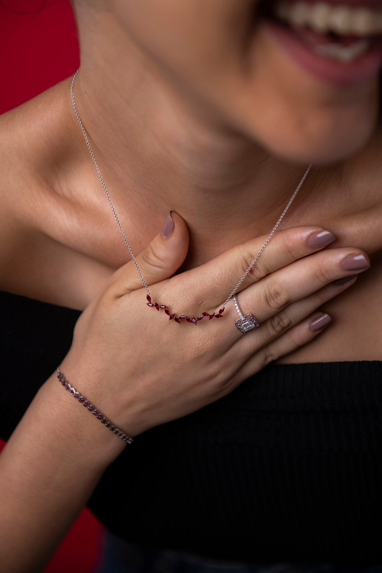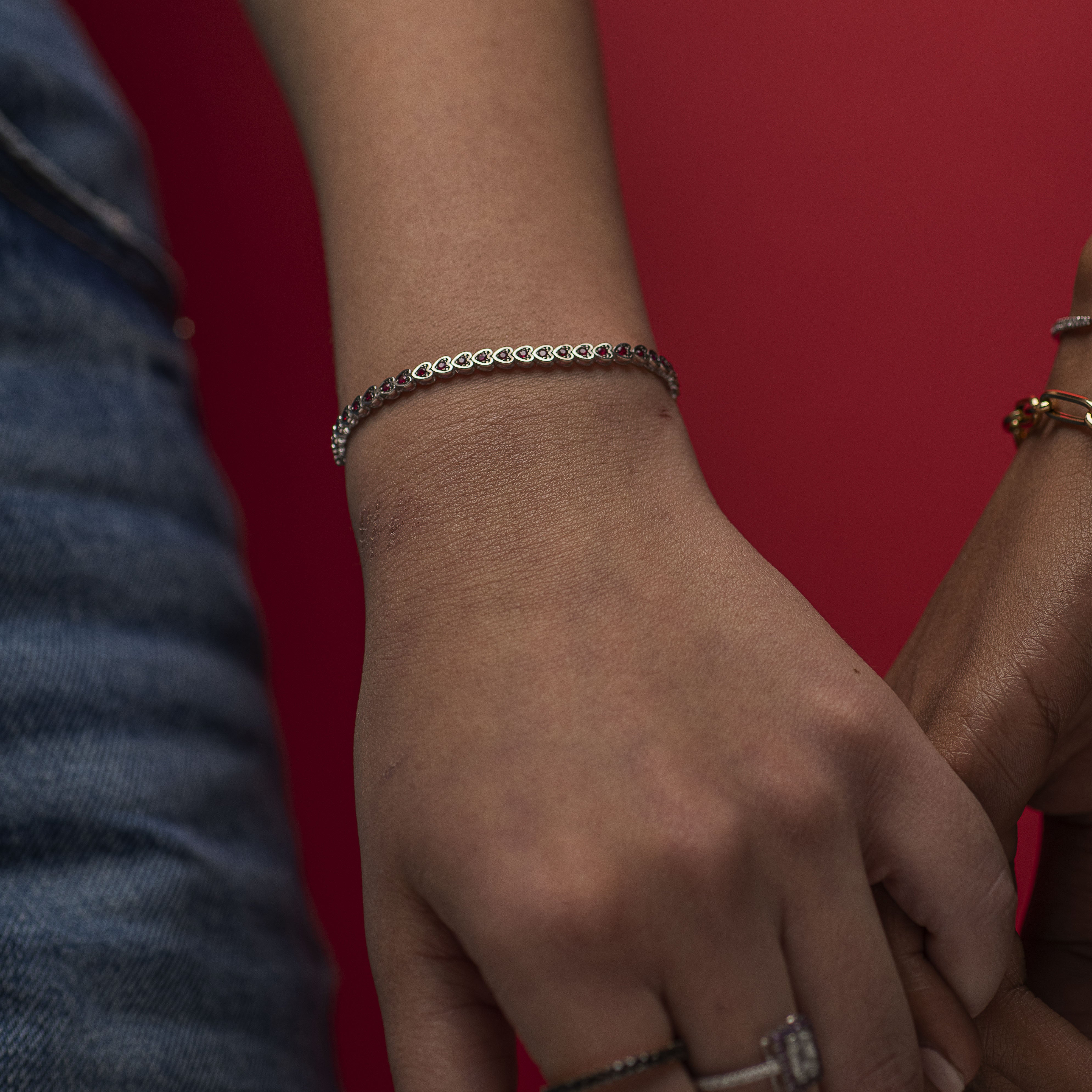 A stunning half-circle of rubies traces the wrist with vibrant sophistication, perfect for everyday luxury.