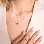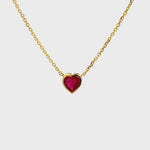 18k gold heart-shaped ruby pendant that rests delicately against the skin, its deep crimson center radiating with every heartbeat. This exquisite piece combines the warmth of gold with the passion of ruby, creating a timeless symbol of devotion designed to be cherished for generations.