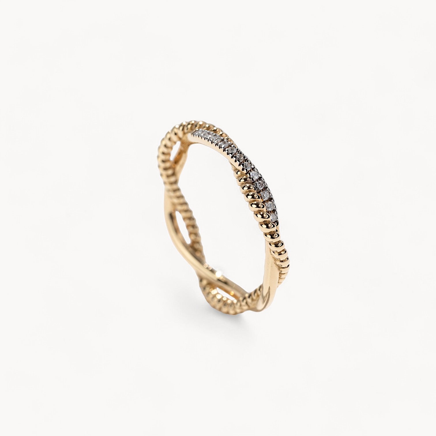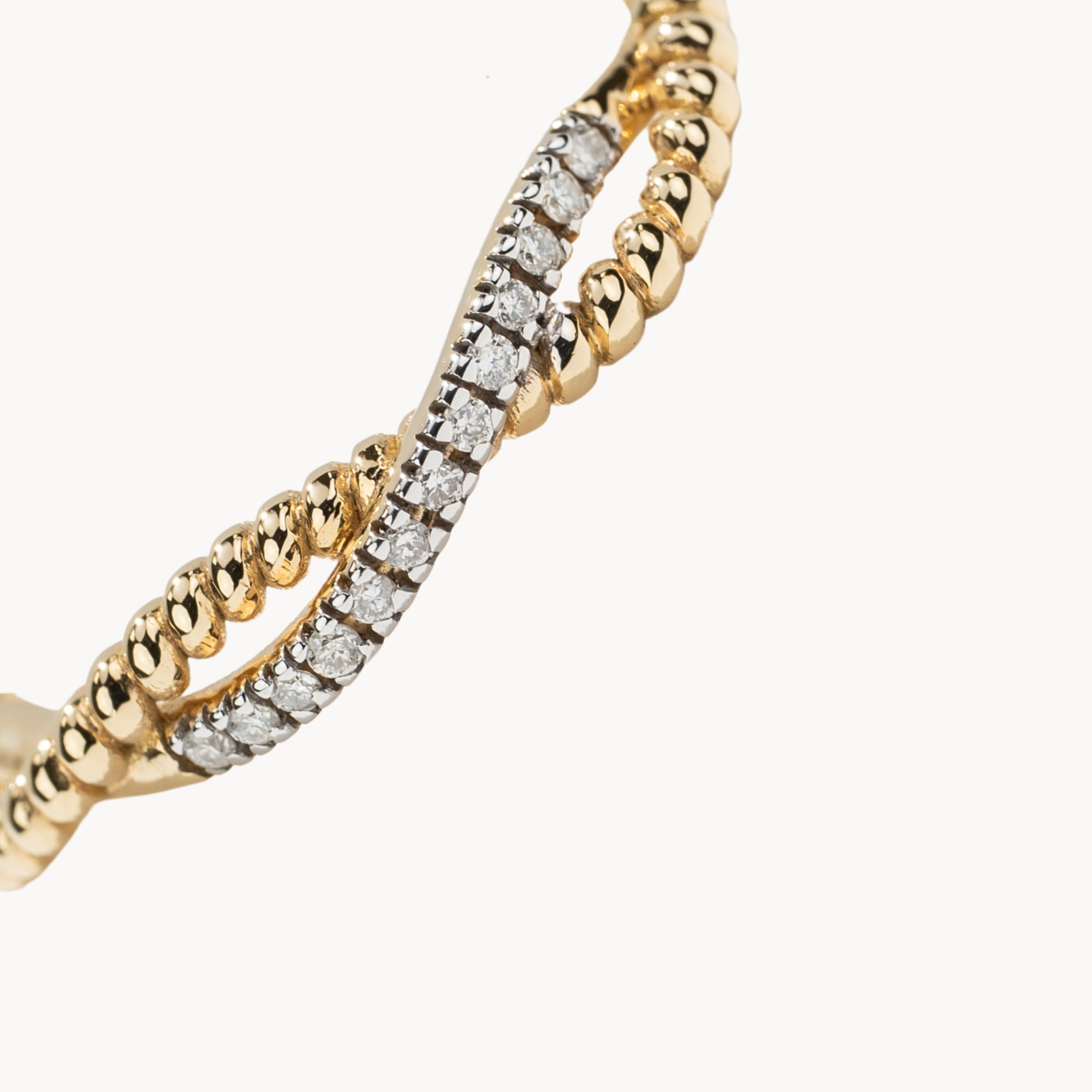 Two is better than one; two classic designs effortlessly intertwined in this 18k gold diamond statement ring.
